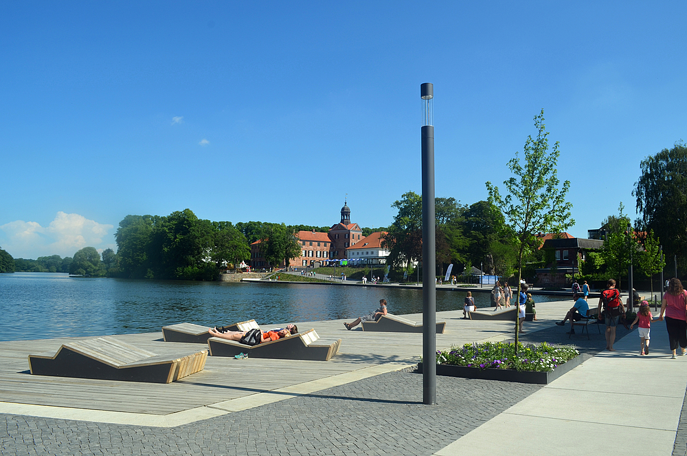 Sollten einem doch die Kräfte verlassen, sorgen nicht nur die zahlreichen Restaurants und Cafés für eine Verschnaufpause, sondern auch der Schloss- und Küchengarten, der Seepark sowie die umliegenden Wälder & Seen bieten stadtnahe Erholung.